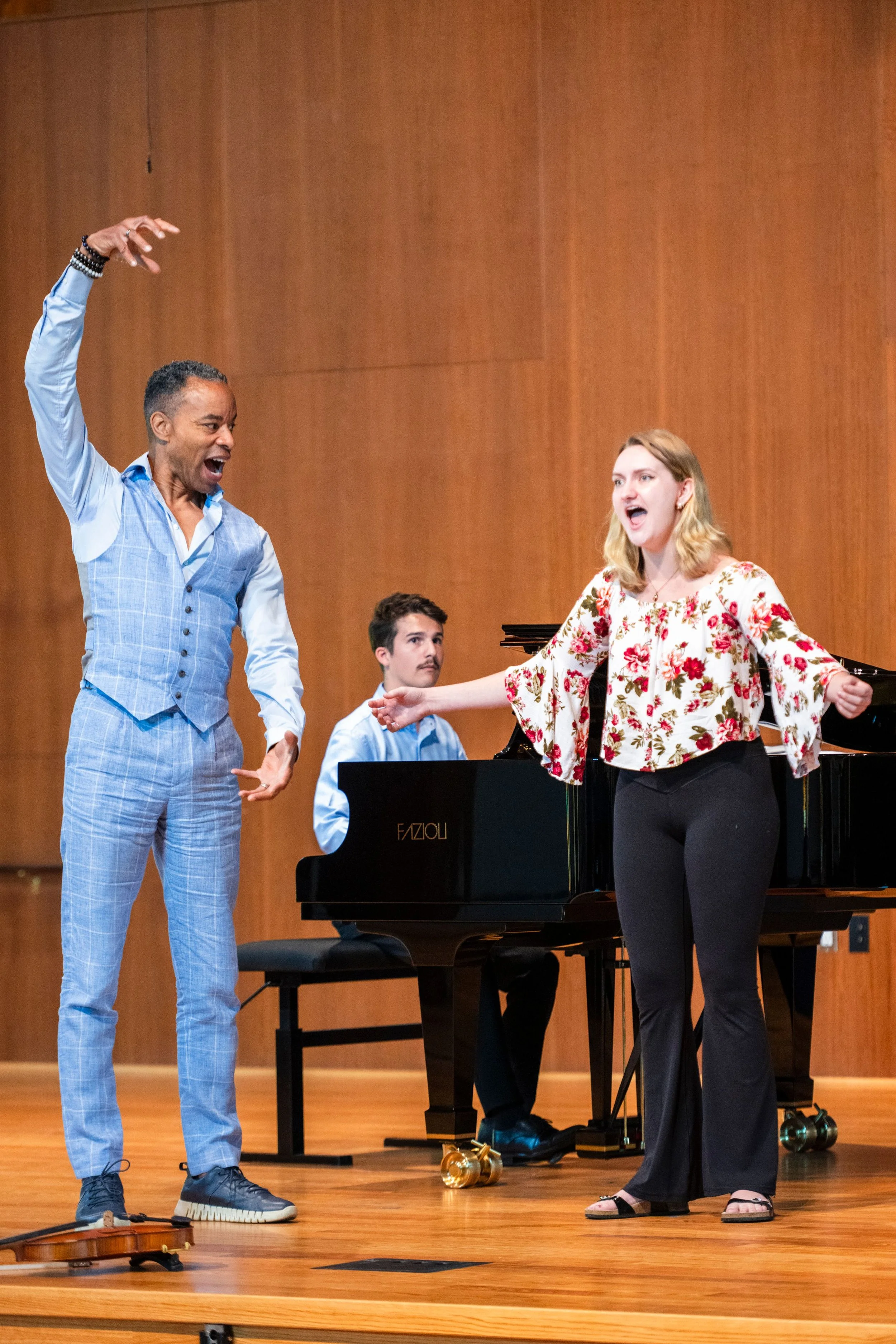 An engaging, educational event where our vocal instructors work with selected participants in front of an audience. Each participant performs a piece, whether a song or scene, and receives real-time feedback and personalized instruction from the expert.